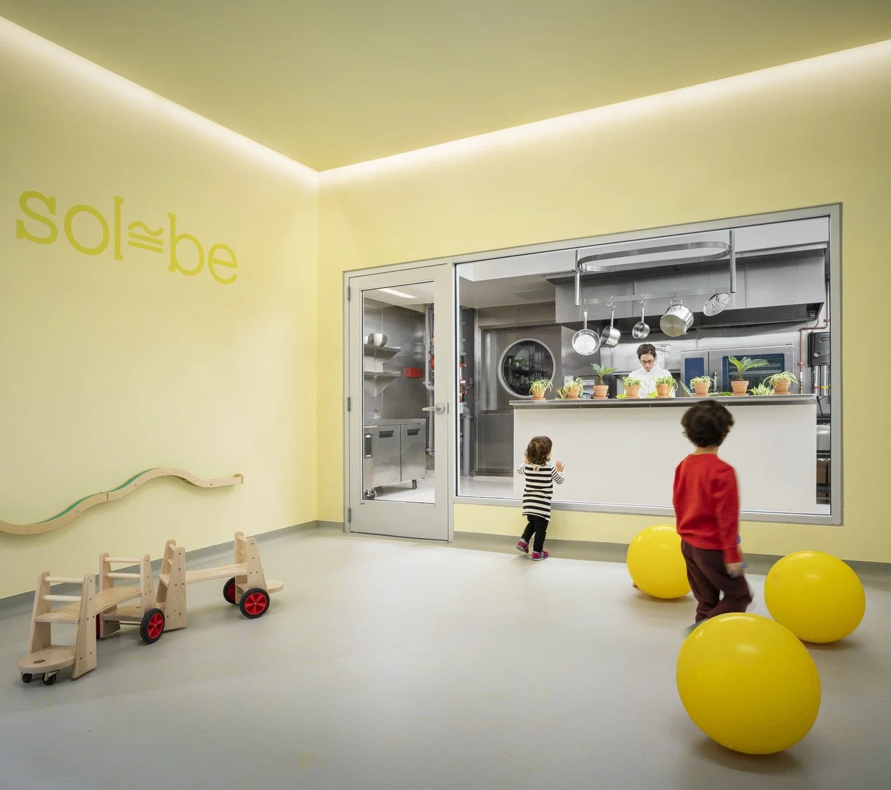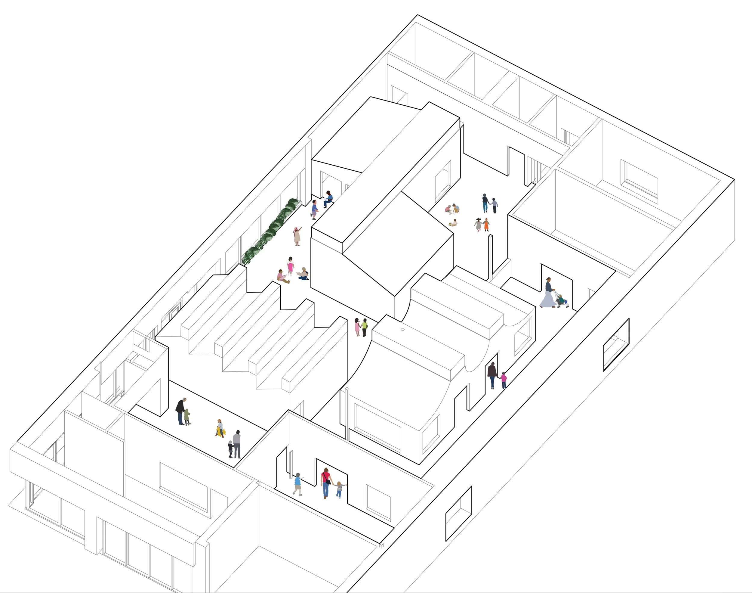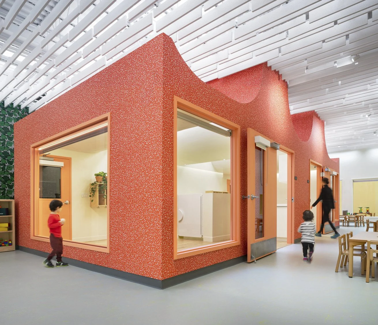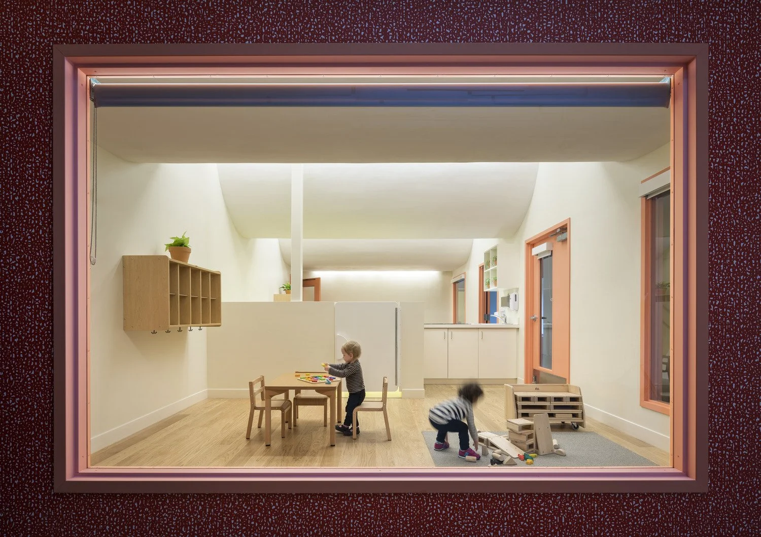 The main space is designed to feel like a large exterior environment while dwellings for the children, divided by age, are situated within an implied exterior environment