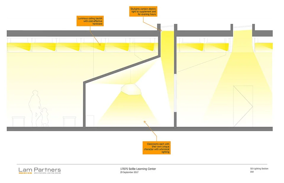 Low glare and balanced contrast lighting combined with the interior design of the dwellings to shape a comfortable learning environment while limiting monotony.