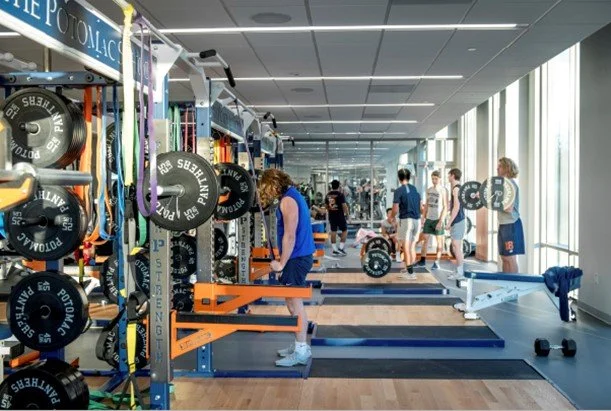 Simple, easy-to-maintain recessed linear slots tied to daylight and presence sensors visually organize fitness zones and deliver uniform light levels, actively adjusting to conserve energy.